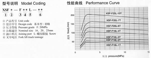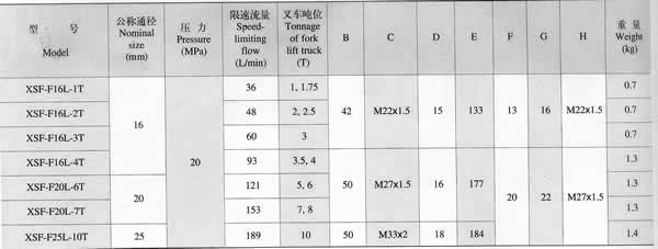 XSF*-F**L系列限速阀的主要功能是正向过油直通,反向过油节流,并通过内部负载反馈系统,自动调节阀芯的开口量,实现反向节流稳定恒流作用。该阀广泛用于叉车及类似的液压系统中,用于控制液压缸下降或回程速度。